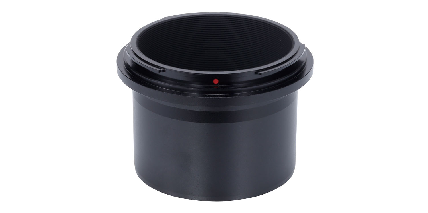 凸レンズにSDレンズ2枚、高屈折率EDレンズ1枚(5群5枚構成)を使用し、前側の凹レンズに新開発の高性能ランタン系ガラスを採用しています。これにより軸上色収差と非点収差を極限まで抑えることに成功、中心像、35mm判フルサイズはもちろんラージフォーマット44×33mm※の最周辺に至るまでシャープで美しく均一な星像が得られます。※レデューサー併用時はフルサイズ36×24mmまで