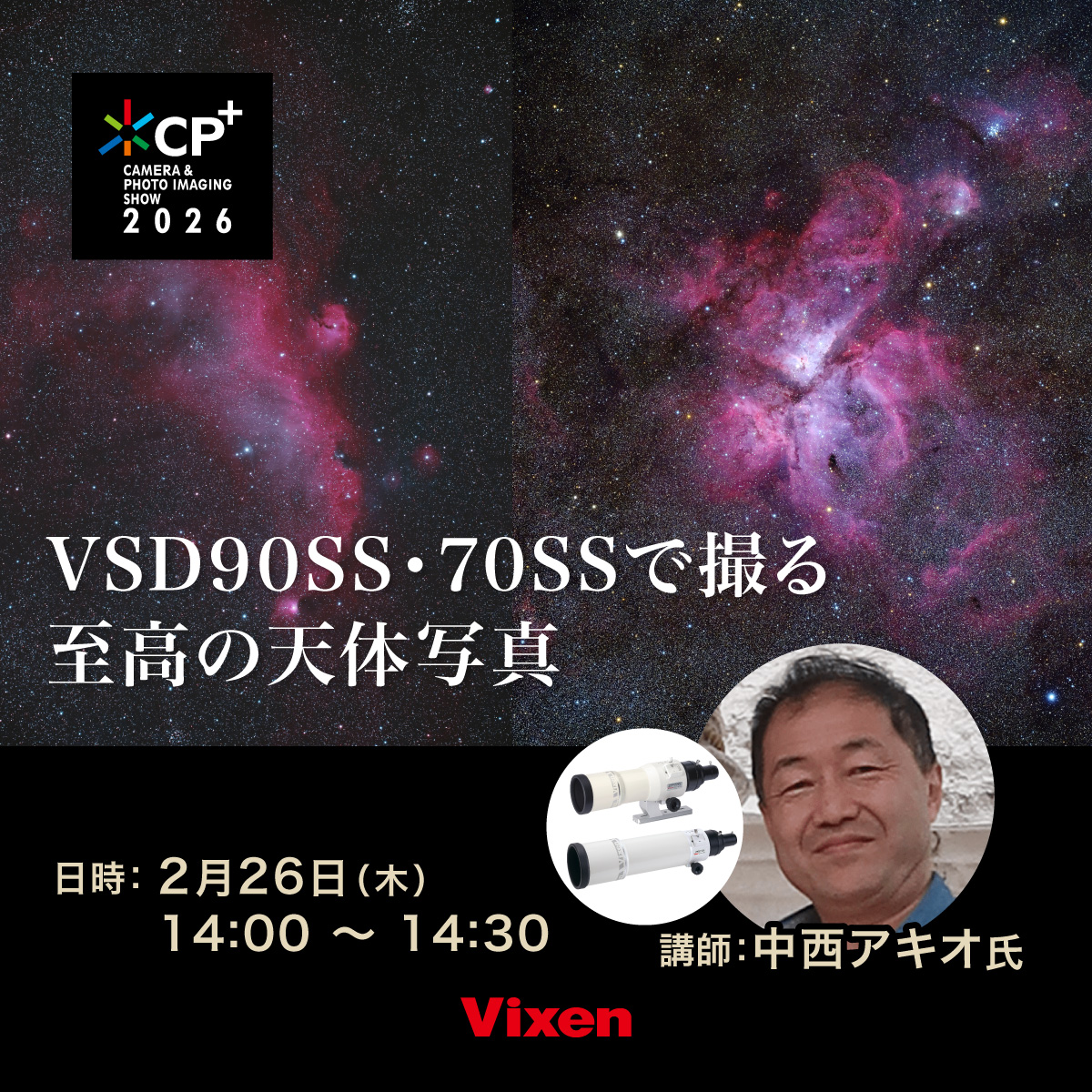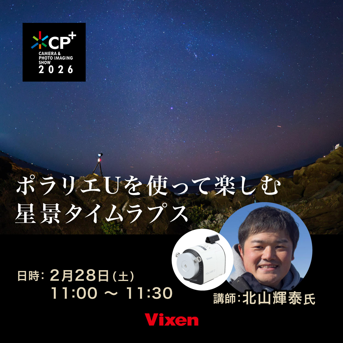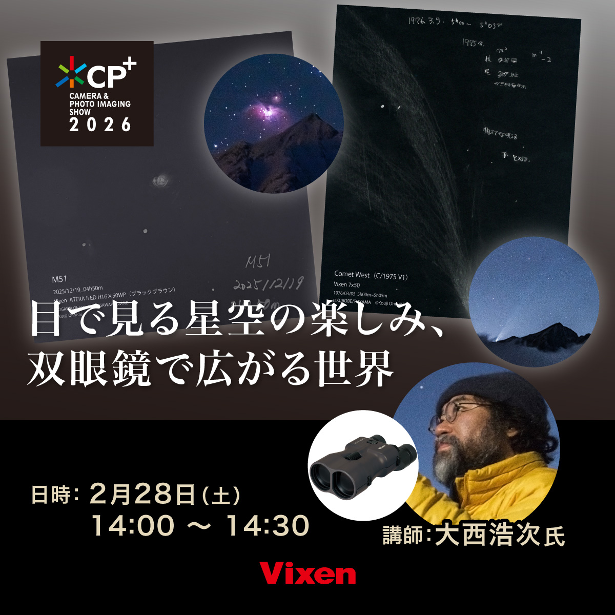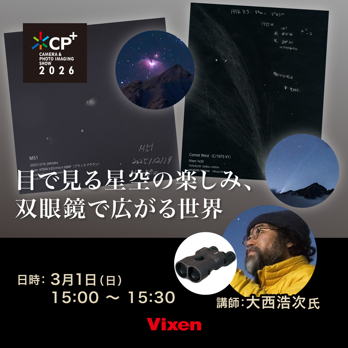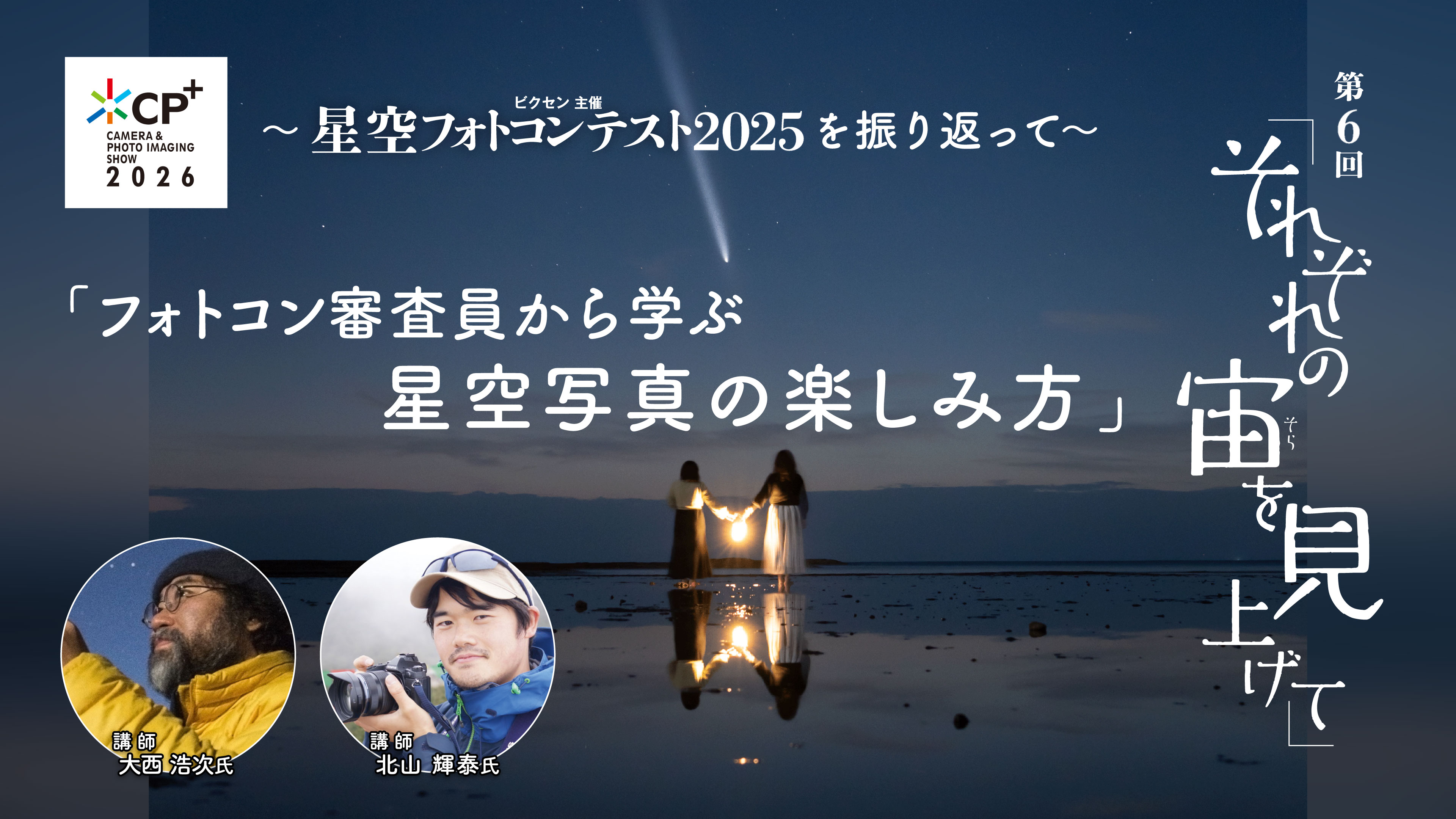 2025年に実施したビクセン主催「星空フォトコンテスト2025 -それぞれの宙を見上げて-」。その講師をつとめていただいた大西浩次さん、北山輝泰さんに、いくつかの入賞作品を振り返りながら、「星空写真の楽しみ」について対談いただきます。星空写真にチャレンジしたい方はもちろん、さらなるレベルアップを目指す方にも役立つセミナーです。