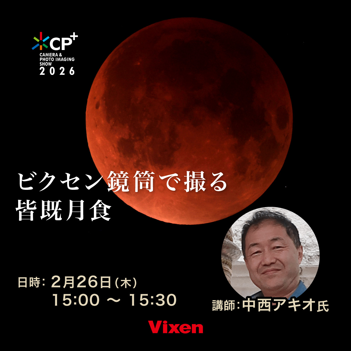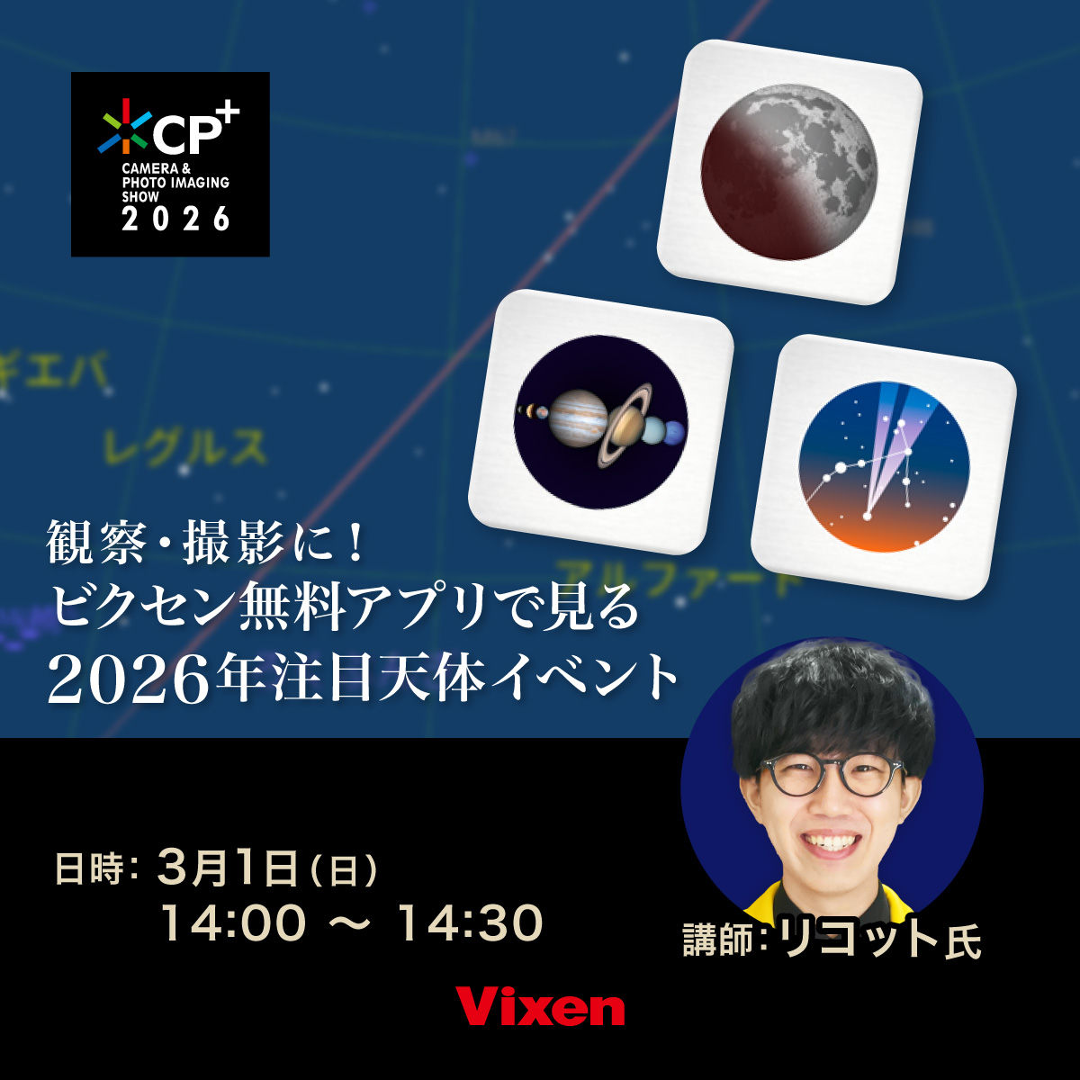 3月3日の皆既月食、12月からの火星接近…2026年も天体イベントが盛りだくさん!実際にどのように見えるのか、ビクセンの無料アプリを使うとひと目で確認することができます。本セミナーでは天体イベントが起こる仕組みと、観察・撮影のポイントを解説します!
