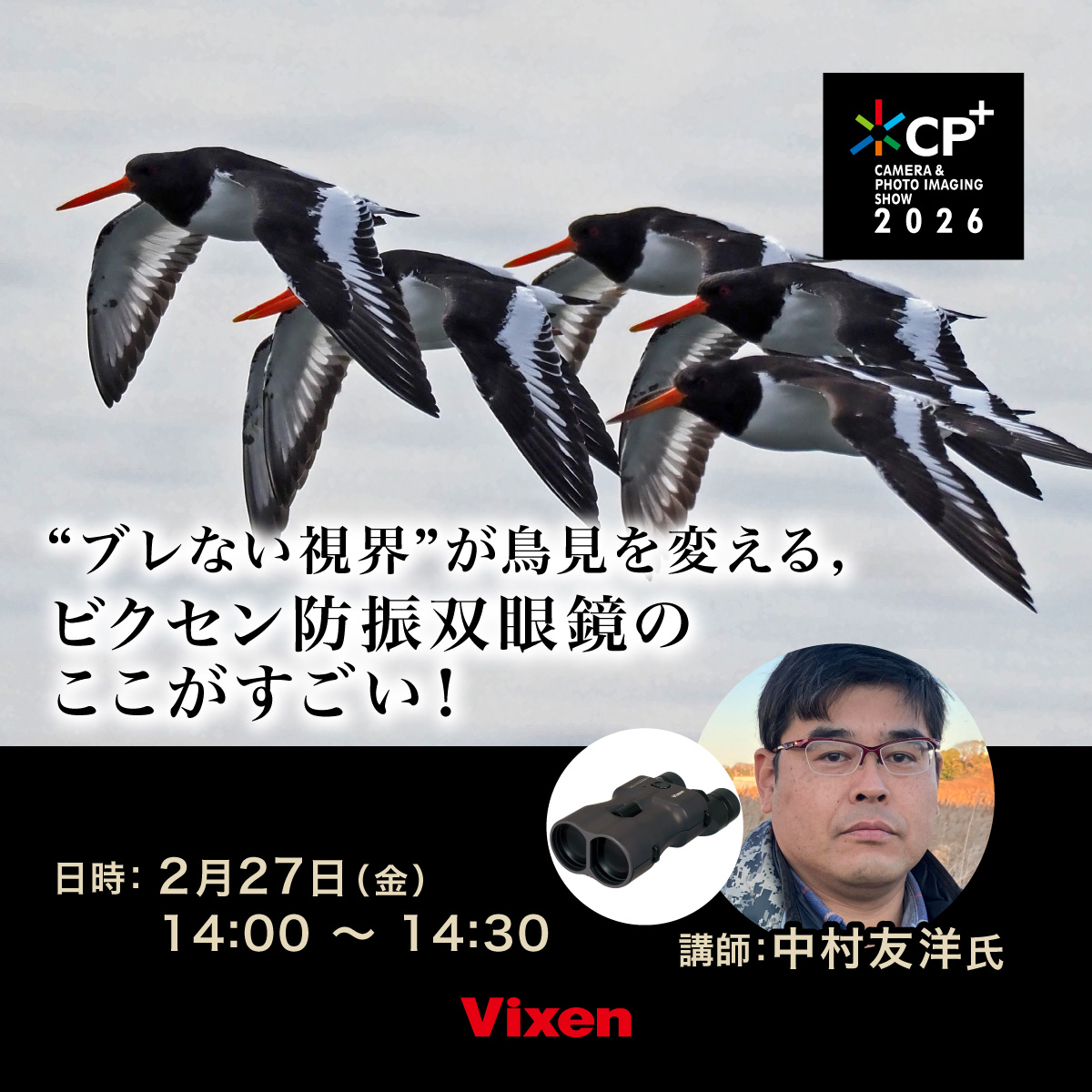 今、防振双眼鏡が活況だ。音楽フェスでの需要で火がついたブームはバードウォッチングに「逆輸入」され、海鳥観察に使う特別な双眼鏡というイメージはもうない。このトークでは現役バードウォッチャーでもある演者が実例を交えつつ、防振効果はどのくらいすごいのか、どんな探鳥フィールドで使うのがおすすめかを紹介する。