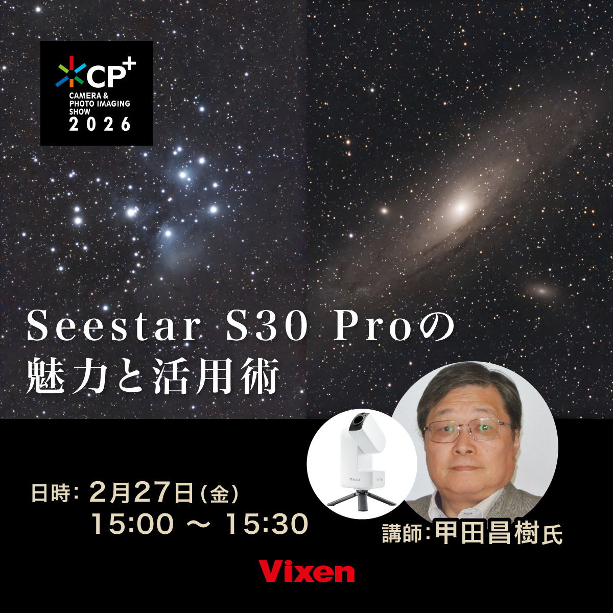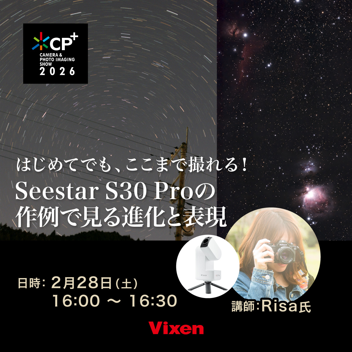 Seestarとは何か、という基本的な特徴から、S30 Proの新しくなったところを実際の作例を交えてわかりやすく解説します。初心者の方にもイメージしやすい撮影の流れから、新機能を使った表現方法まで機材の違いが作品にどう影響するのかを、写真を通して体感できるセミナーです。
