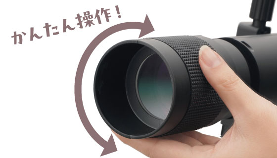 対物レンズ側のローレット(リング)を回すだけで、かんたんにピント調整が可能です。