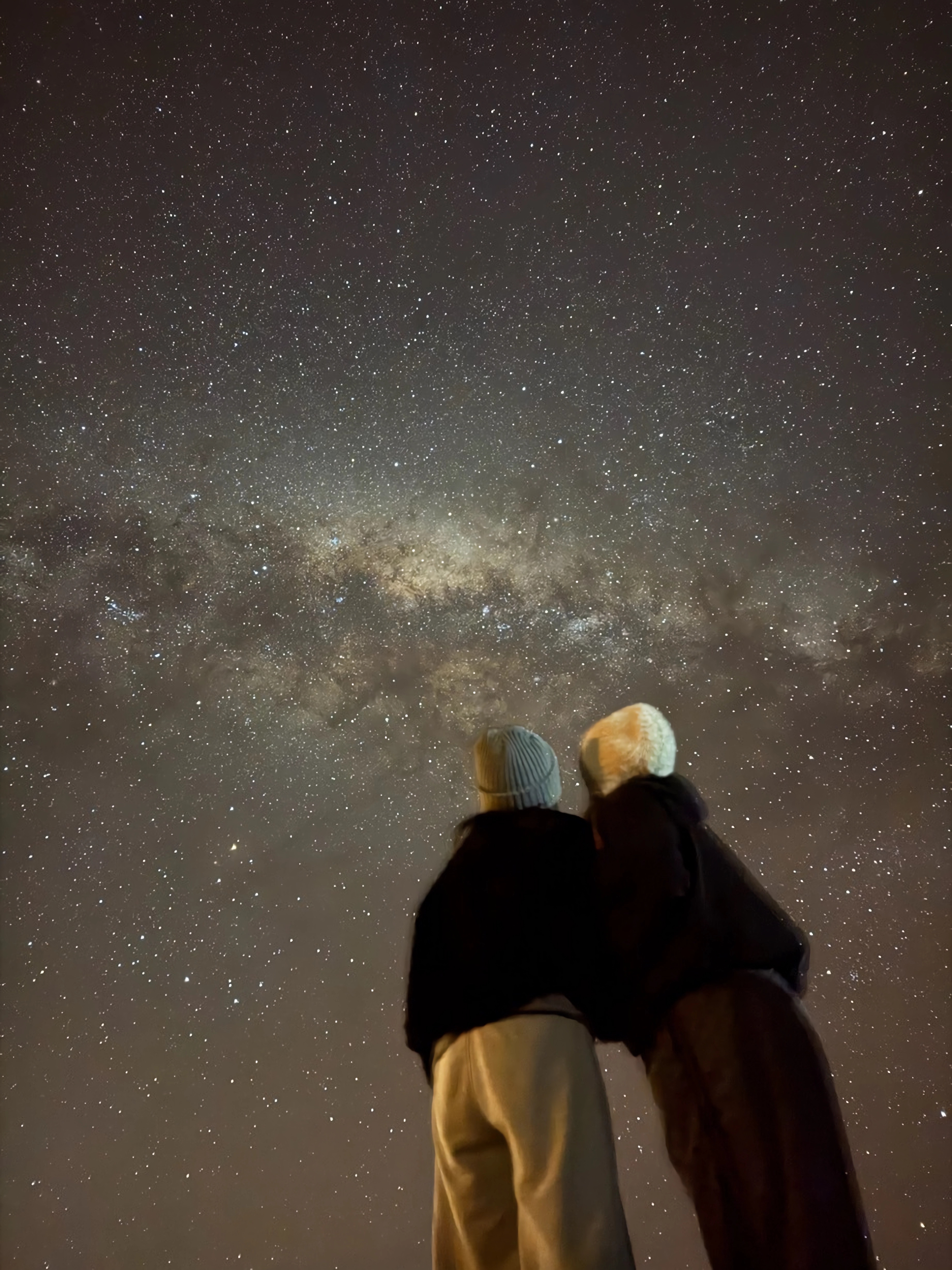 このとき、南十字星の左側には「ポインター」と呼ばれるケンタウルス座の二つの1等星、α星とβ星も見えていたはずで、南半球の星空の入口に立つような、特別な夜だったことがうかがえます。
