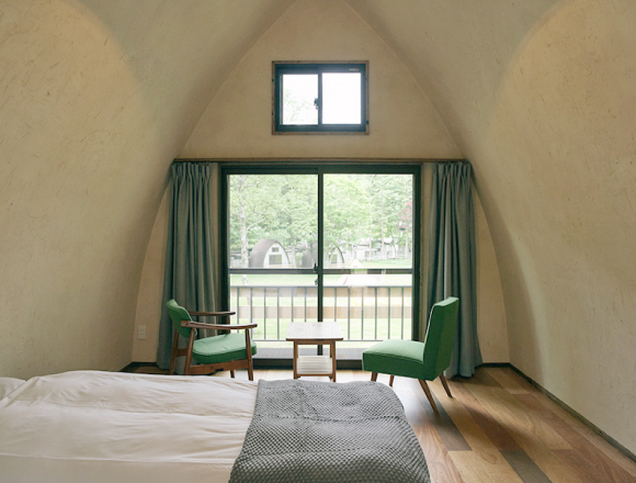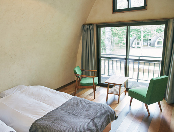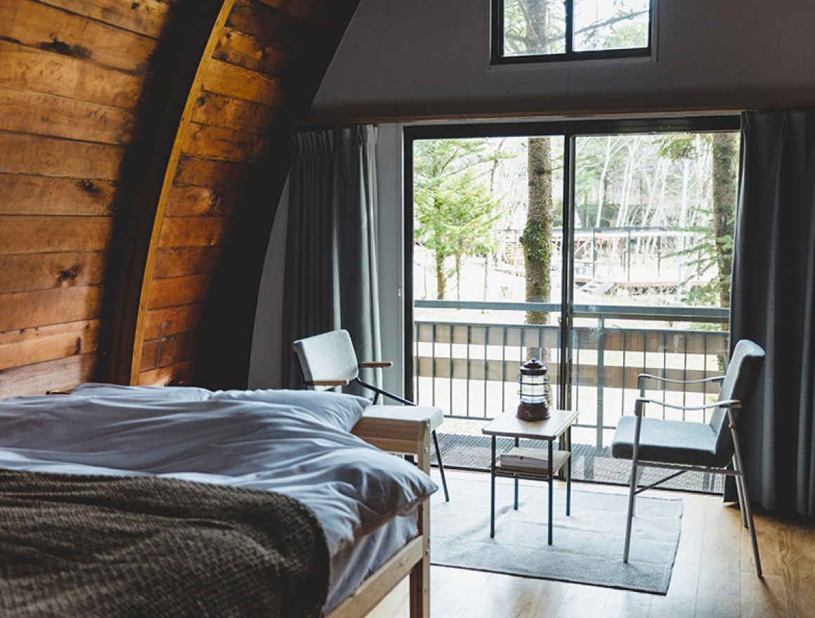 ツインベッドに加え、オリジナルの家具を配した、2名様向けのキャビンです。