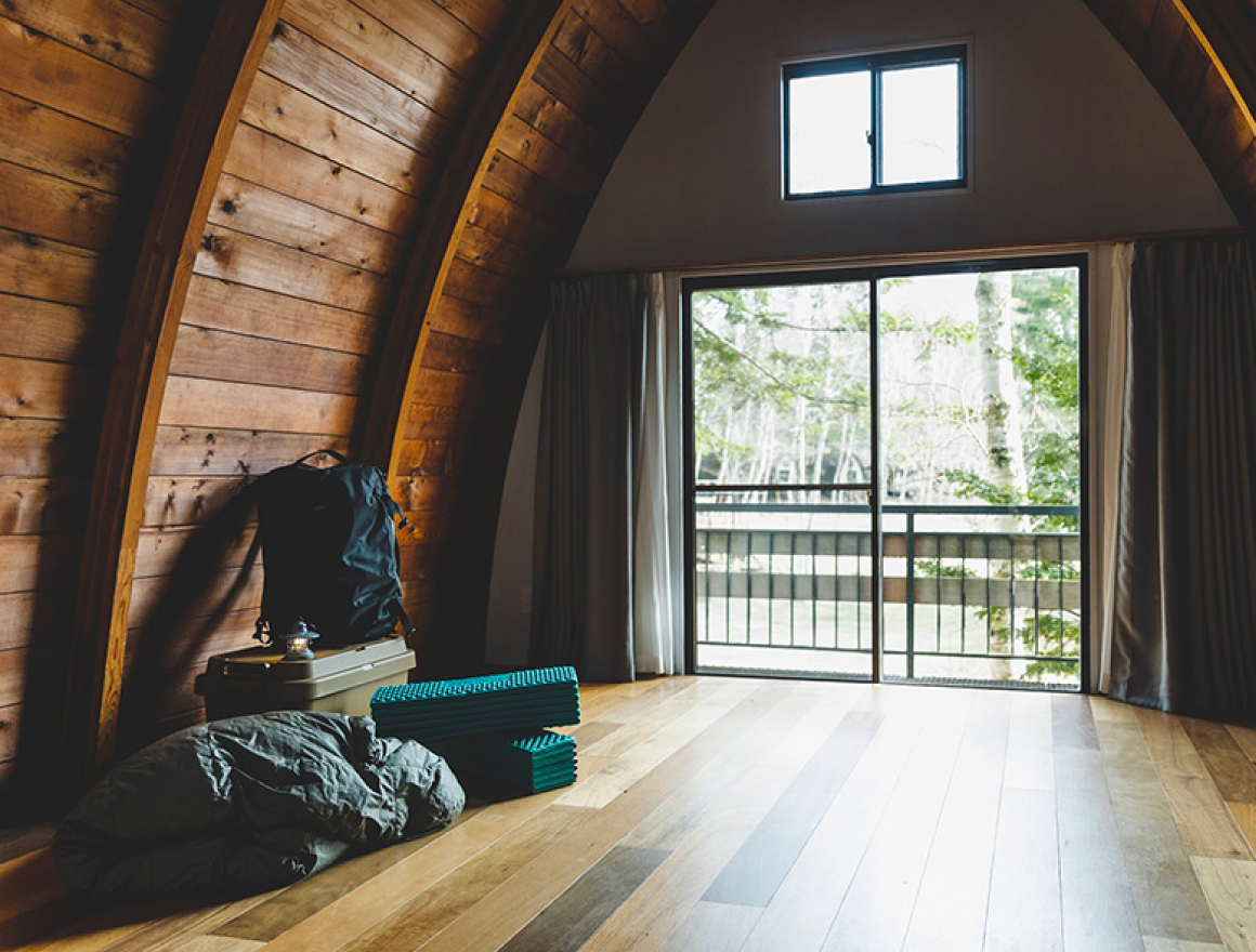 こだわりのキャンプギアを持ち込み、自分だけの空間を自由に作りたい本格派のためのシンプルなキャビンです。