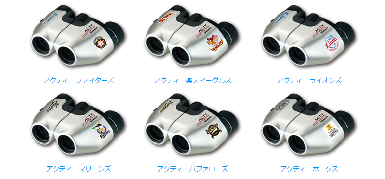 ※球団ロゴ入りのオリジナル双眼鏡は、ビクセン双眼鏡「アクティ」に、各球団のロゴをプリントしています。