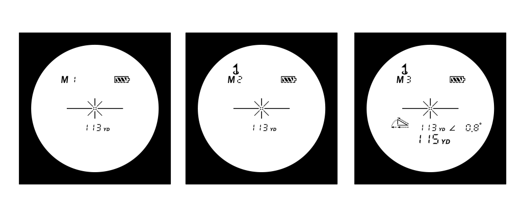 「スロープとピンシーク機能の両方が作動するモード(モード3/M3)」では、コースの傾斜に応じて打つべき距離を自動計算。モード3使用時はライトが消灯します。