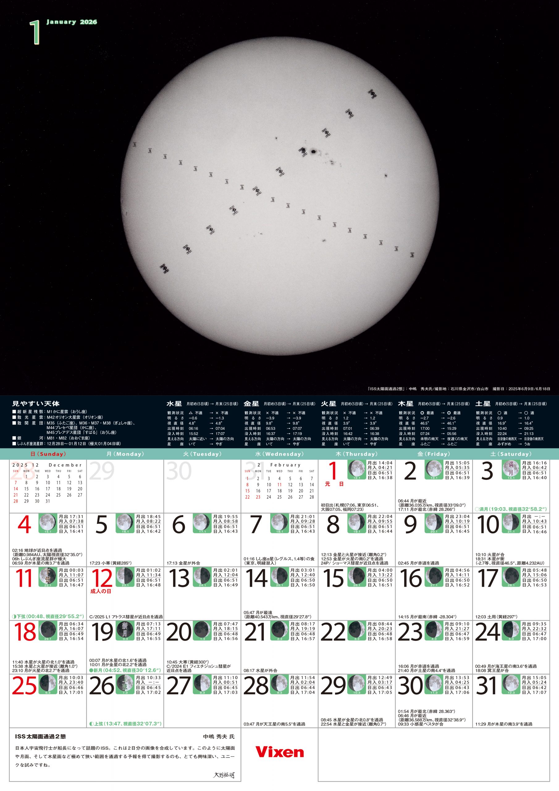 天体観測や撮影計画の必需品 『ビクセンオリジナル天体カレンダー2026年版』 ...