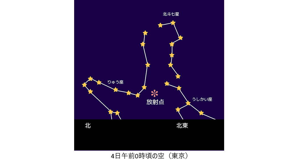 参考:「しぶんぎ座流星群」国立天文台(https://www.nao.ac.jp/astro/basic/quadrantid.html)