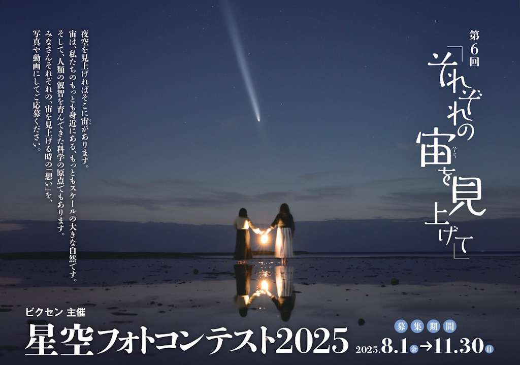 総合光学機器メーカー株式会社ビクセン(本社:埼玉県所沢市、代表取締役:新妻和重)は、2025年8月1日から11月30日の期間で募集していた、「第6回 星空フォトコンテスト2025~それぞれの宙を見上げて~」の入賞作品を発表しました。