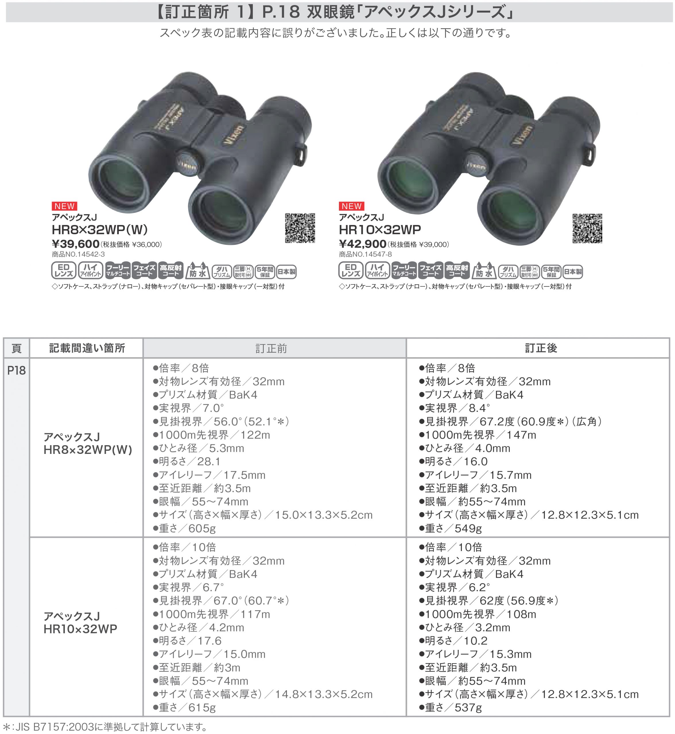 この度、2026年2月発行の「Vixen総合カタログ」におきまして、掲載内容の一部に誤りがあることが判明いたしました。