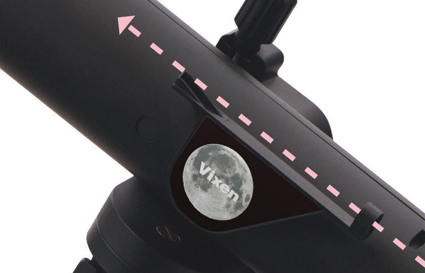 素通しファインダーの視野の中心に月を入れると、望遠鏡の視野にも月が入っているので、スムーズに観察が始められます。