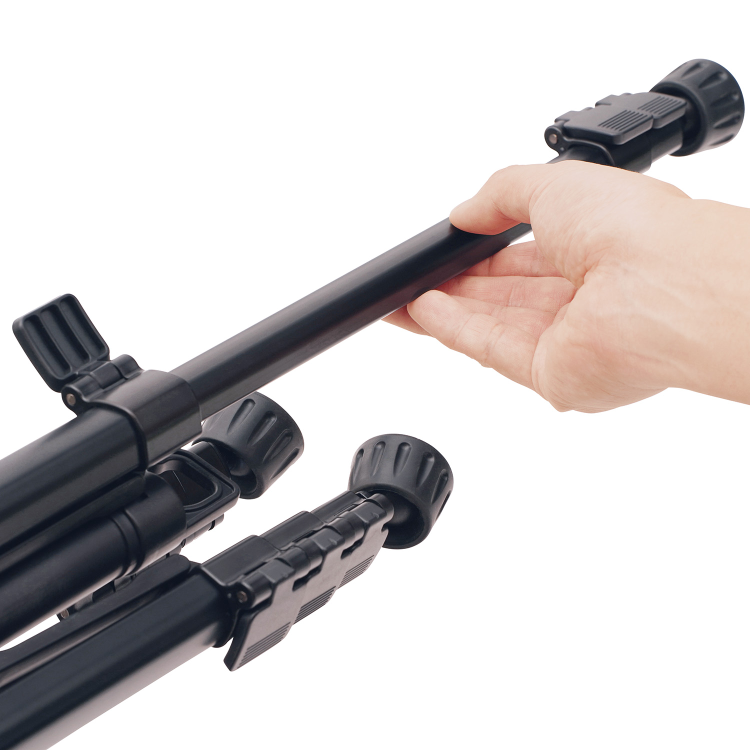 脚の伸縮はレバー(バックル)式を採用しており、素早いセッティングが可能です。