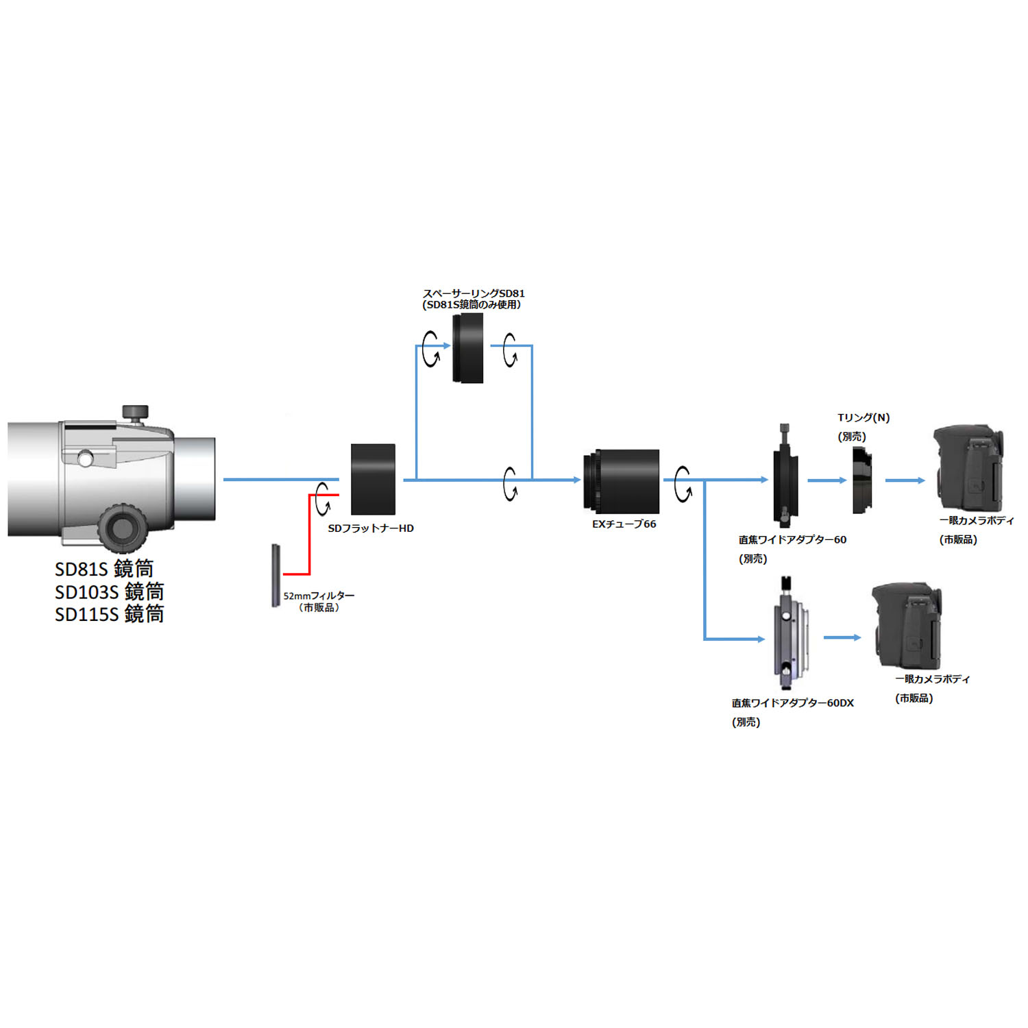 SD81SII(SD81S)、SD103SII(SD103S)、SD115SII(SD115S)鏡筒用の高性能フラットナーレンズ、接続リングのセットです。