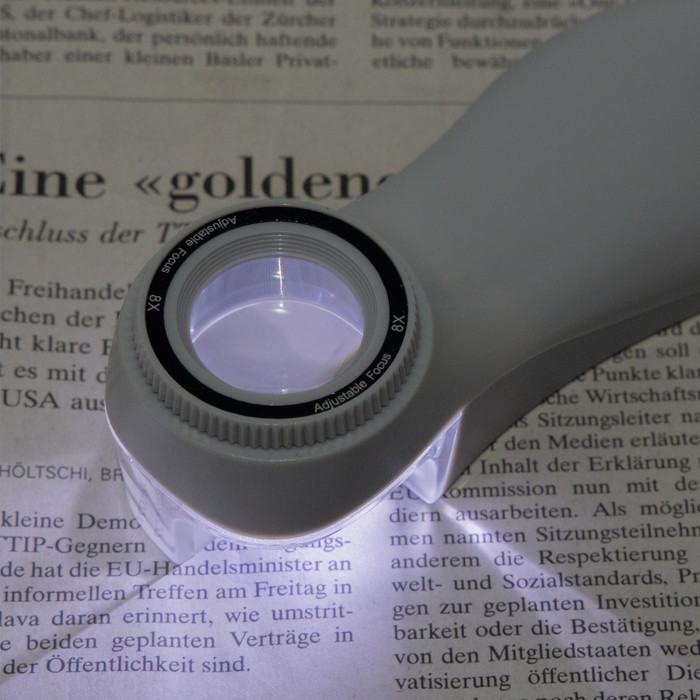 倍率8倍の高倍率ルーペです。弱視の方の読書補助、簡易顕微鏡として、鉱物・植物などの自然観察にもおすすめです。軽くて透明度の高いアクリルレンズを採用しています。