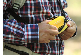 ポーチに付属するストラップは、長さを調整できる範囲が広く、着脱も可能です。肩から斜めがけにしたり、ベルトに通して腰に下げたり、ポーチ単体で使用したりと、3通りの使い方ができます。またポーチ内には小さなポケットがあり、コンパスなどの星空観察グッズも同時に収納できます。